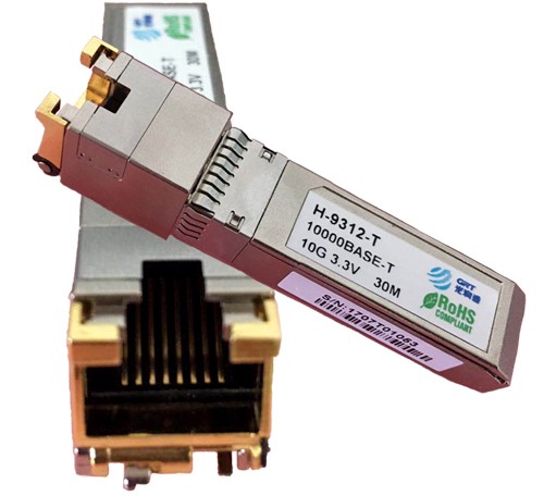 H-9312-T是一款萬兆SFP+電口模塊,其采用RJ45接口,最高速率可達10G,傳輸距離最遠能夠達到30m。萬兆電口模塊主要是集成在交換機、網卡等產品上,廣泛應用于萬兆以太網中。